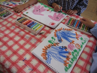 今まで作ってきた、折り紙製作や絵画制作などを入れる