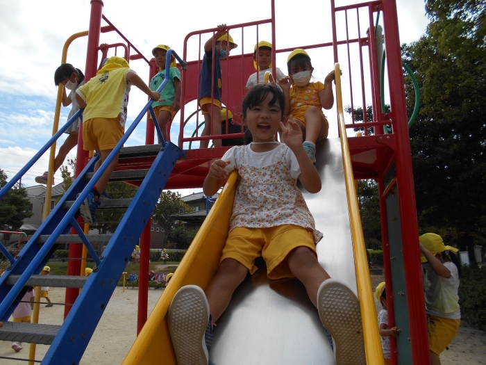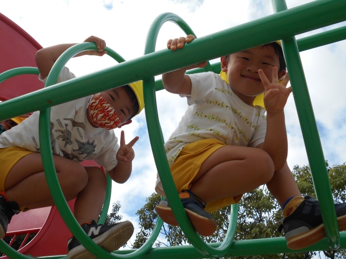 運動会を頑張ったごほうびにみんなで公園に遊びに行きました!久しぶりのみんなで行く公園に大喜びの子ども達♪遊具で体をたくさん動かして楽しく遊ぶことができました😂