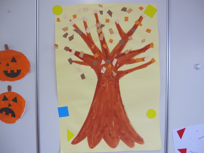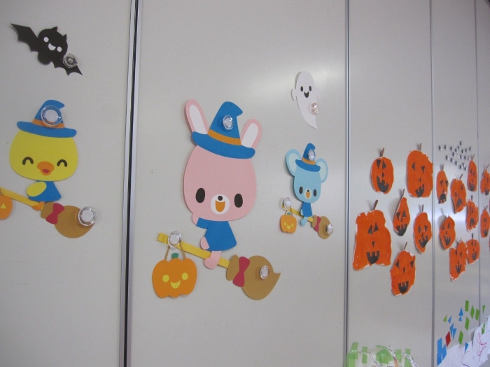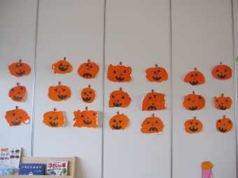 いろんな形のかぼちゃが保育室の中をにぎやかにしてくれています💛