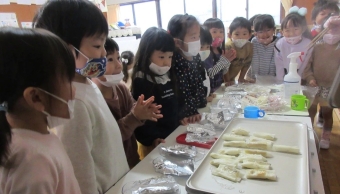 ジュワ~!っと焼いている音に大興奮の子ども達☆