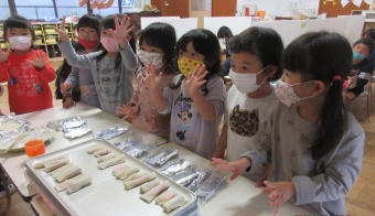 具材を中に入れて皮をくるくる巻いたり、焼き上がる様子を友達と見たりと楽しい思い出ができました😍