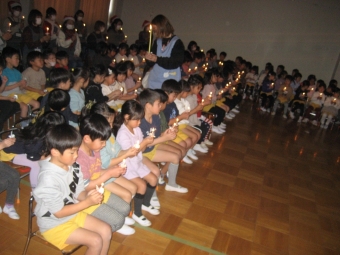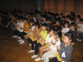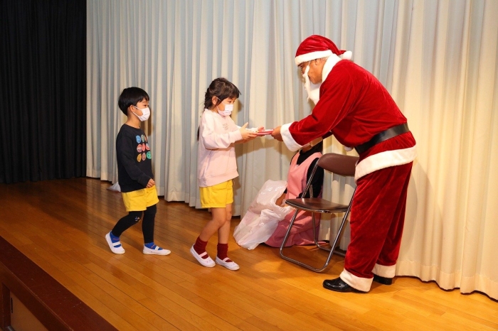 年中・年長全員で遊戯室で集まって、クリスマス会がスタートしました!