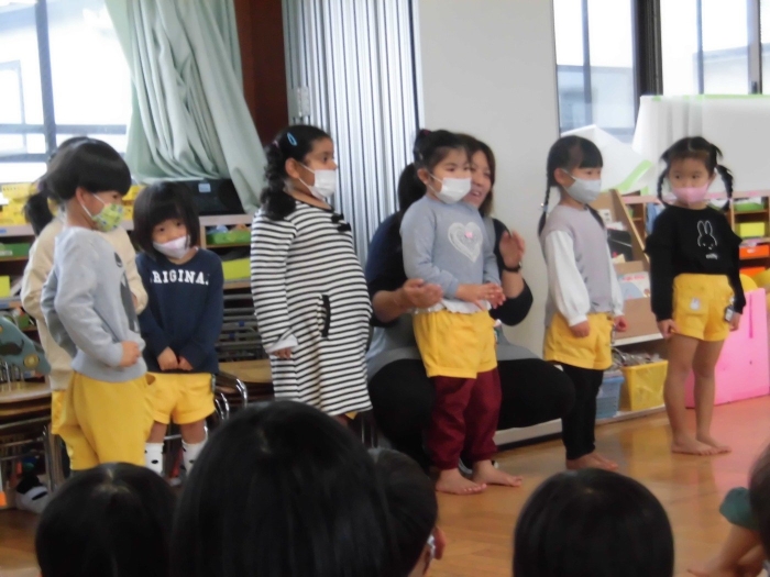 12月生まれの誕生日会を行いました☆今月の質問は「サンタさんに何をお願いしたの?」でした!メイクセットや電車などそれぞれが嬉しそうに教えてくれました♪