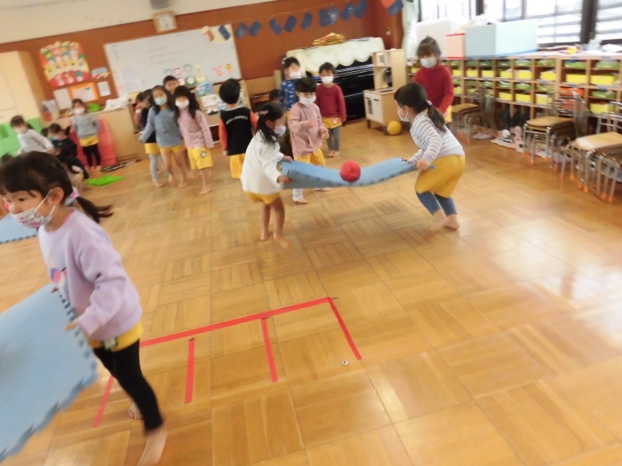 その後はボール運びではなく、プレゼント運びリレーをしました!ペアの子と力を合わせてバランスを取りながらゴールすることができました♪