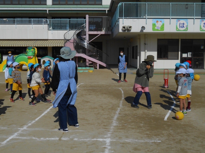 3回戦目は先生対子ども達!先生達の豪速球を受けてもへこたれず「ボールを取ってやる!」という子ども達の気合が感じられましたよ♪