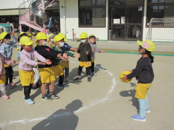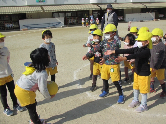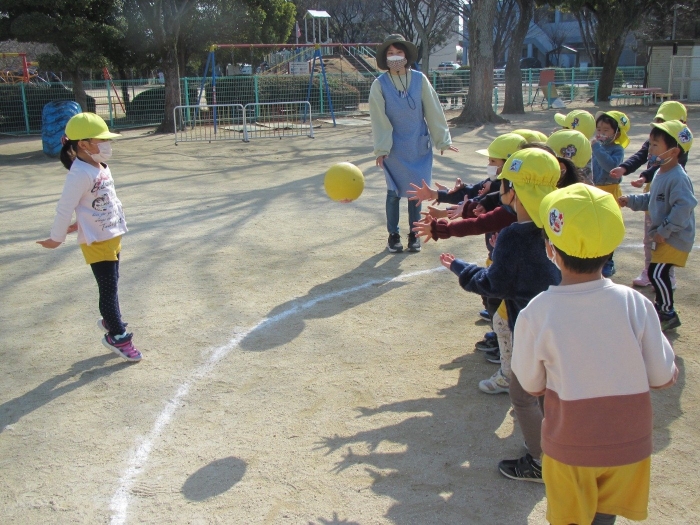 はじめは、バウンドしたボールをキャッチするのが怖くて逃げていた子が多かったですが、だんだんと慣れてたくましくボールに向っていくことができました♪