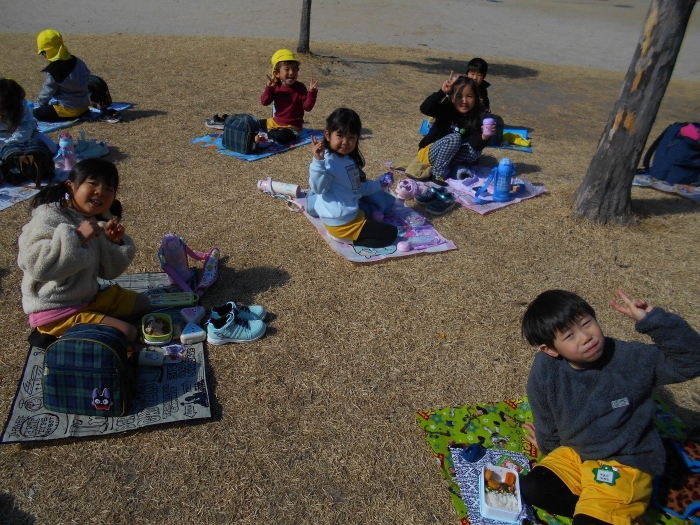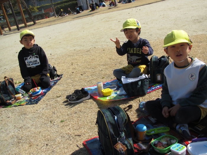 到着したらまずは腹ごしらえ!お母さんお手製のお弁当をクラスごとに食べました☆