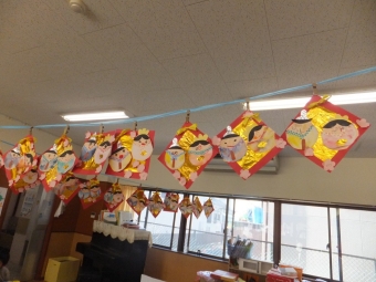上を見上げると、子ども達が作ったひな製作が💛🌸