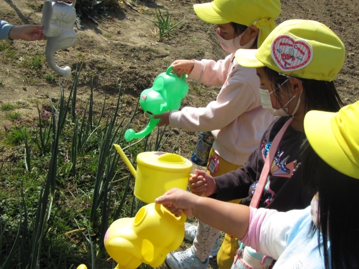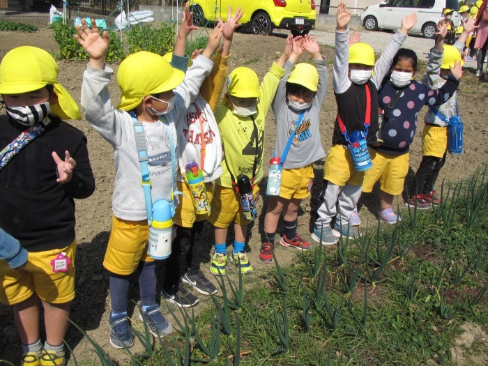 「前より大きくなってる!」「玉ねぎの頭が見えてるよ!!」と成長を感じて喜ぶ子ども達でした☆収穫する時がさらに楽しみになりました♪