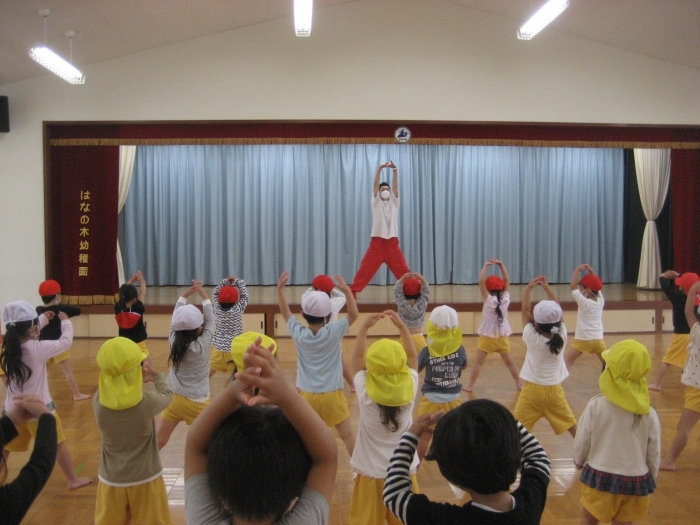 ダンスの振り付けも順番に教えていただき、年少さんは48小節の振りを、年中・年長さんは62小節分の振りを覚えました。1回目なので、まだうろ覚えですが、なんとなく「それっぽい」感じを楽しみました♪