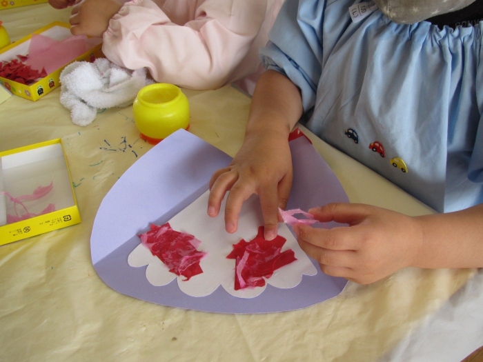 お母さんを思い浮かべながら、ひとつひとつ丁寧にちぎったりのり付けをしていましたよ♪