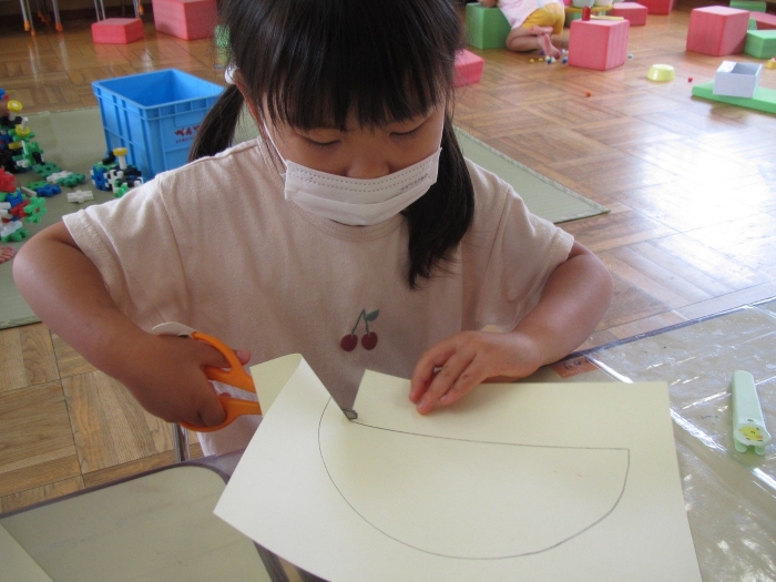 チョキチョキ…線に合わせて切るのを頑張ったよ!