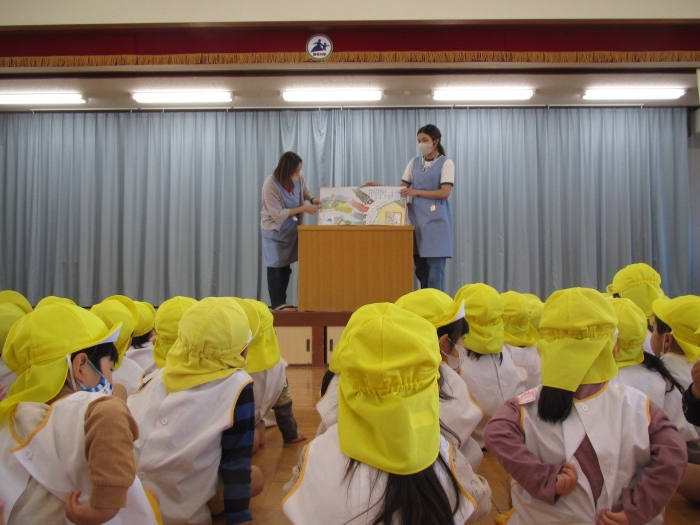 みんなでこどもの日にまつわる絵本の読み聞かせをしたり、帽子とりのゲームをしました!