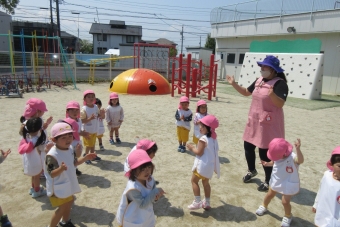 外ではみんなの大好きな「エビカニクス」の曲で体操をしたり、