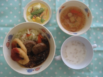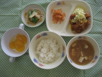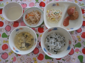 給食が始まって1ヶ月が経った年少さんは、1日の生活や給食に慣れてきて