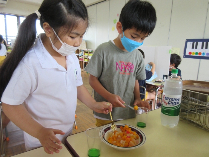 5月のおやつ作りで『しゅわしゅわフルーツポンチ』をつくりました!