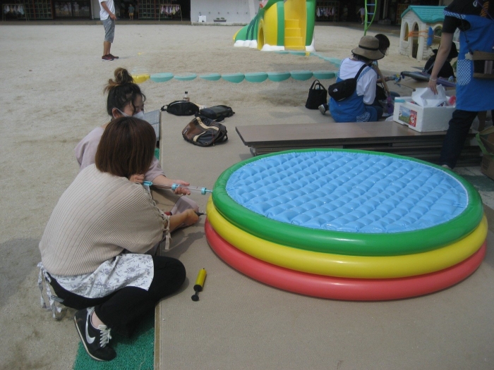 午前中にはお祭りを盛り上げる飾りつけや、縁の下の力持ち作業など、はなの木会の役員さんや、有志のパパメイトさんにお手伝いただきました。ありがとうございました!!