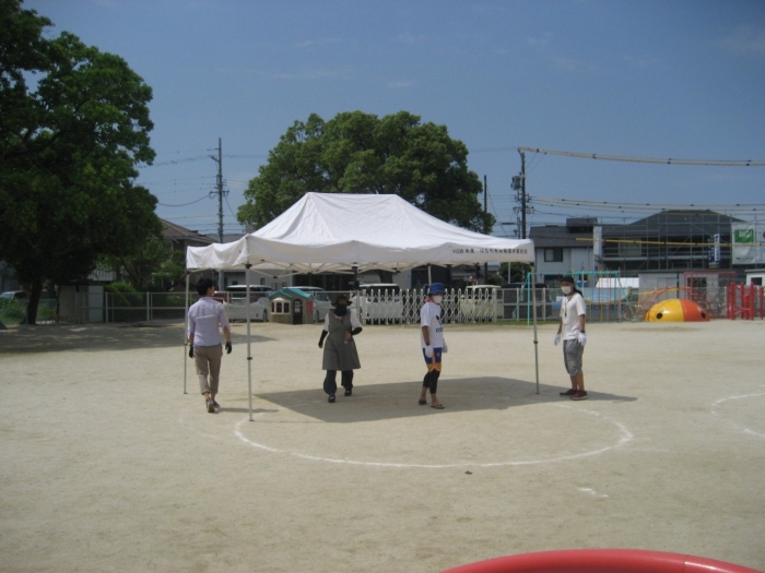 (ほんとは本番のように公園でやりたかったのですが、公園の木々の剪定でまさかの園内トラック乗り入れ中・・・)