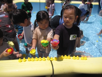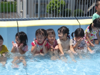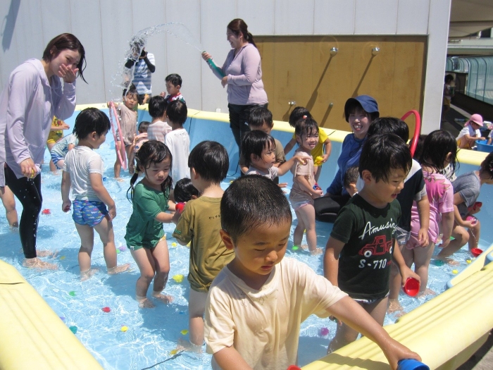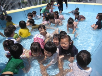 連日猛暑が続いていますが、子ども達は2階のプールで