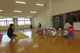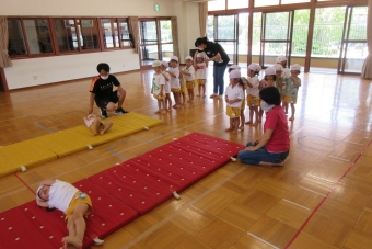 年少さんは、遊戯室でマット運動などでカラダをコロコロしたりして♡楽しみました。