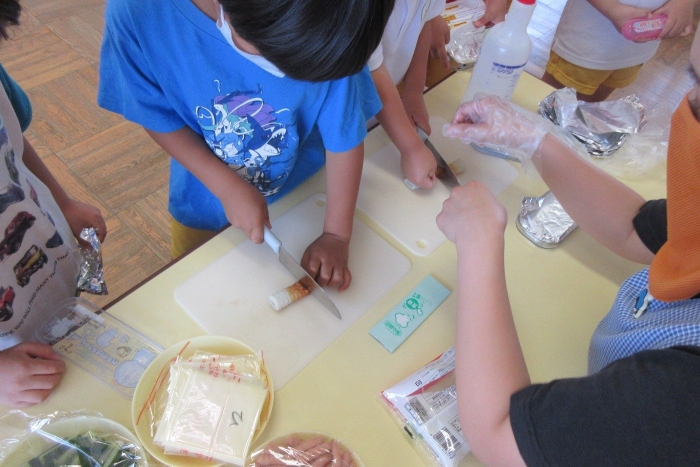 「お母さんのお手伝いで使ったことあるよ!」と自信満々の子や「使ったことがないからドキドキするー😳」と胸を躍らせている子もいました!