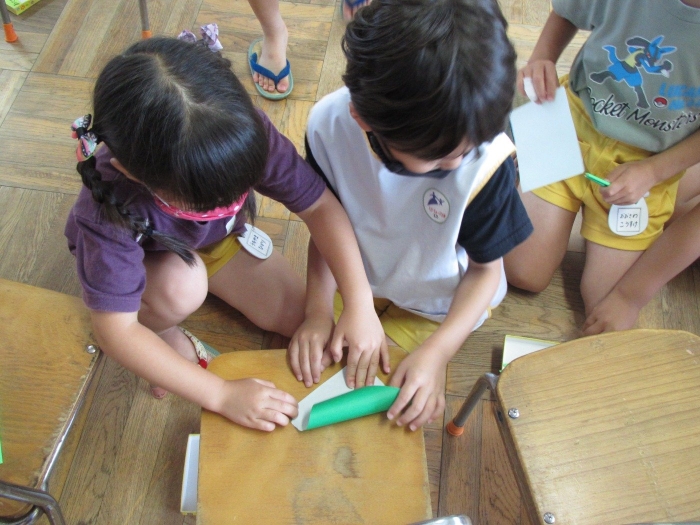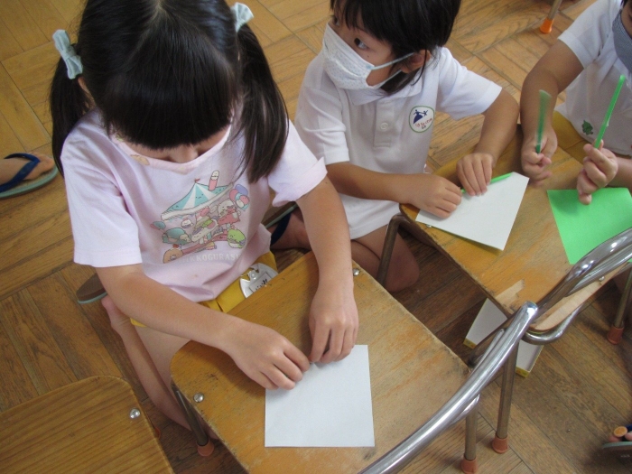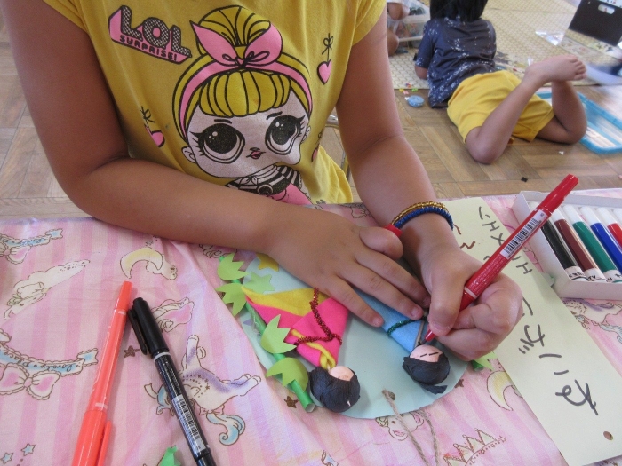 織姫と彦星に顔を描いて完成!小さい顔に頑張って描けたね☆