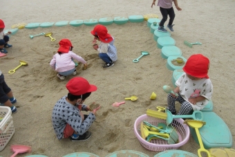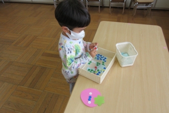 保育室にあるブロック遊びやシール貼り、ままごとに夢中になったり外遊びを行ううちに、