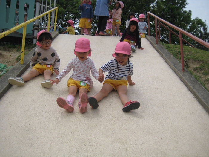 初めての園外保育で恐竜公園に出かけました😀「笛がなったら止まるんだよね!!」「友達と手は離さないよ!!」と、保育室で担任の先生から教えてもらった約束事をしっかり守って歩くことができていました!恐竜公園では、先生やお友達と一緒に滑り台をしたり、四つ葉のクローバーを探したりして遊びました⭐また晴れた日にはみんなでいろんな公園に出掛けようね💗