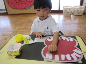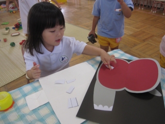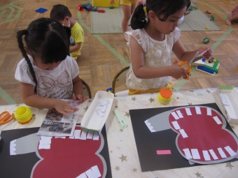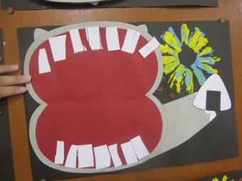 今回の製作ははさみで直線切りに挑戦し、かばの歯を作りました✂🦛🦷