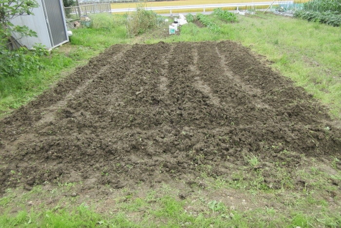 草を抜いて、全て土を掘り起こして、肥料を撒いて、畝を作って、・・・🍠完成です👏