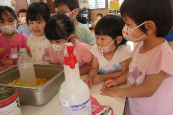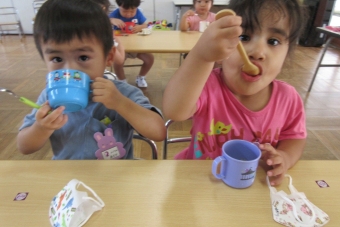 夏期保育が始まり、久しぶりの幼稚園に