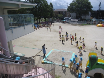 9月1日の防災の日に近いこの時期に、幼稚園でも避難訓練を行います。