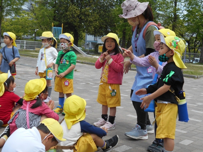 年中さん初めての誕生日会は、昭和6号公園で行いました!覚えたての誕生日の歌をみんなで歌ったり、質問コーナーをしました♪みんなの前で緊張しながらも、自分のクラスや名前を大きな声で発表することもできましたよ😄来月からも誕生日会を行う予定です☆