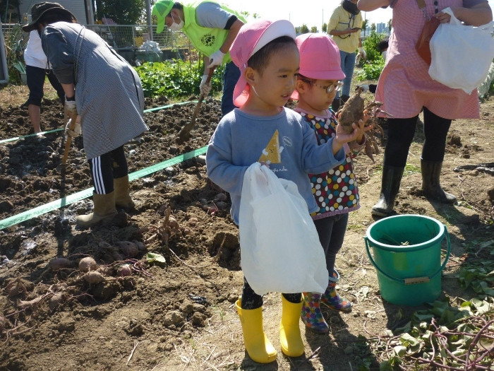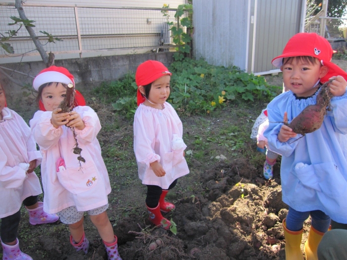 あまり大きくは育たなかったお芋でしたが、とっても楽しく芋掘りに参加できました♪