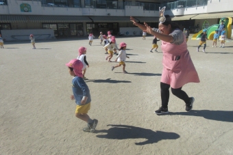 そのあとはお外で"オオカミさん今何時?"というゲームを行いました。