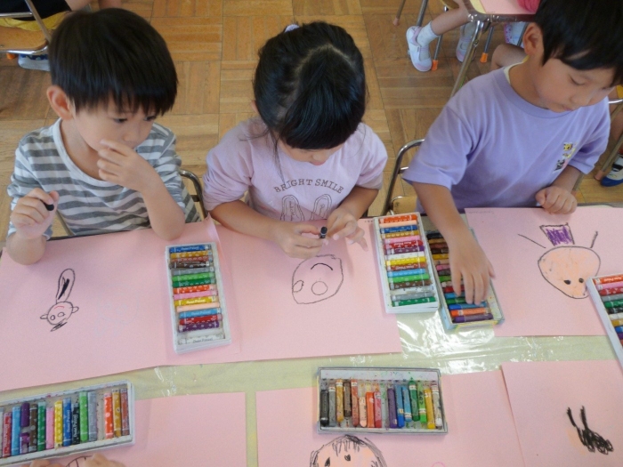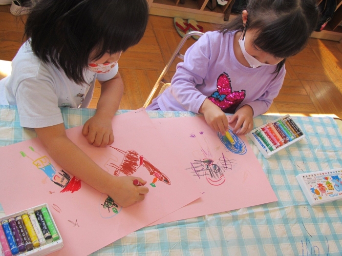 いちご動物園の絵を描いている様子です😊