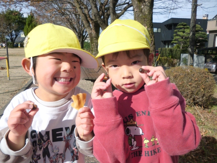 普段とは違う遊具で遊べたり、落ち葉やどんぐりをたくさん拾って両手いっぱいお土産を持っている子もいました😍💞
