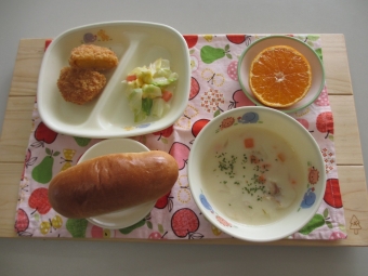 久しぶりにパンがでました😍パンにシチューの組み合わせは、寒くなってきたこの時期にピッタリですね!♥