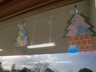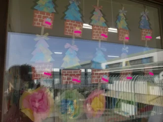 完成したクリスマスツリーはクラスごとで窓に飾りました🥰