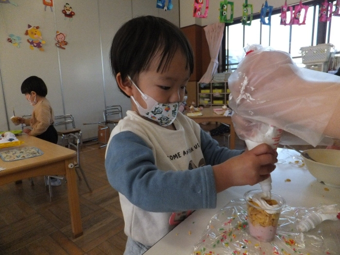 うさぎくみさんの1月のおやつ作りでミニパフェを作りました💞