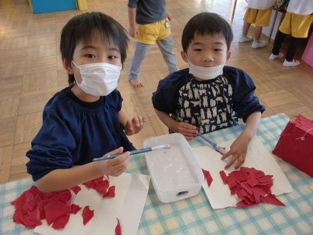 友達同士で「たくさん糊付けるとひっつくよ☆」と教えあう姿も見られほっこりしました💓