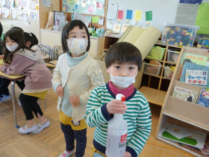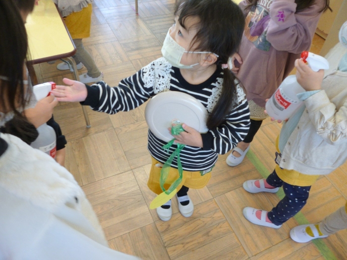 スタンプを押してもらったら次は消毒係さんに消毒をかけてもらいます(^^)