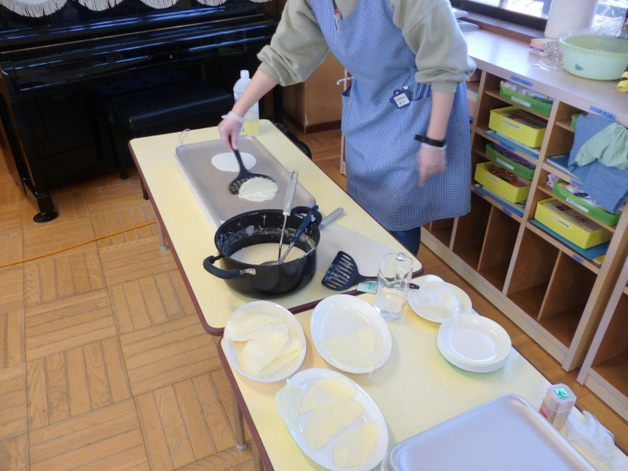 1月のおやつ作りは、クレープを作りました!!