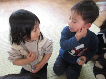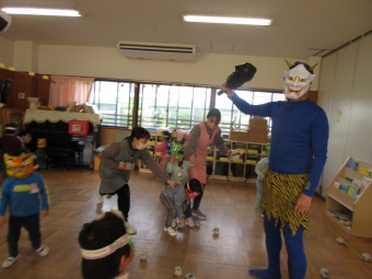 果敢な子は「鬼は外~!」と思い切り豆をぶつけていました😁
