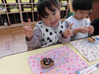 もっちもちのカップケーキに大満足のおやつ作りでした!!