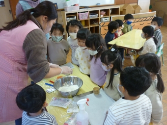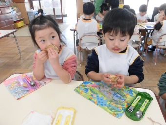 給食室へ行ってコックさんに焼いてもらったら・・・