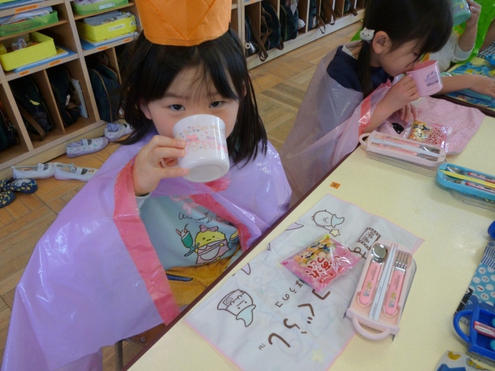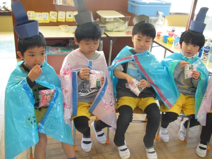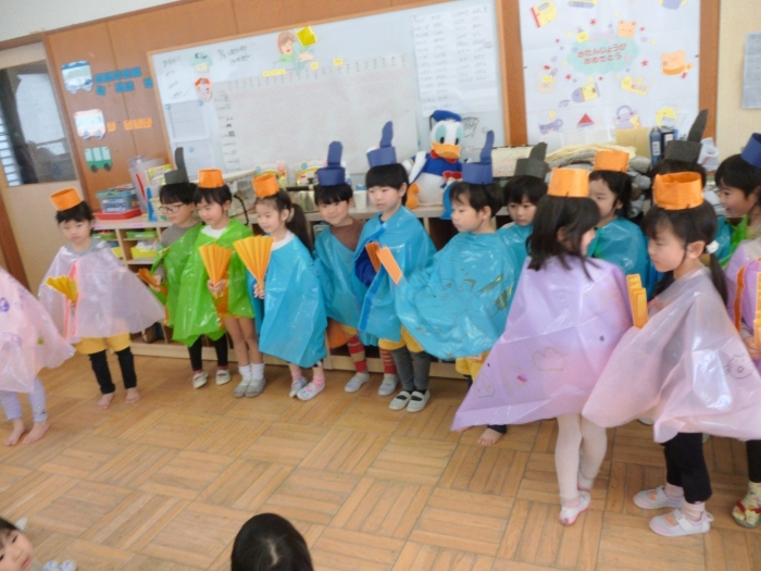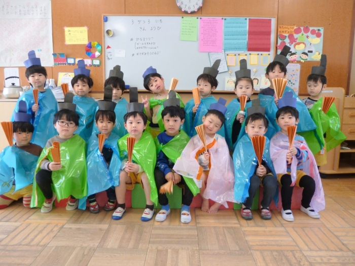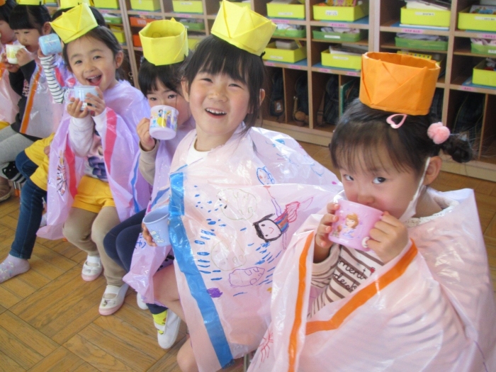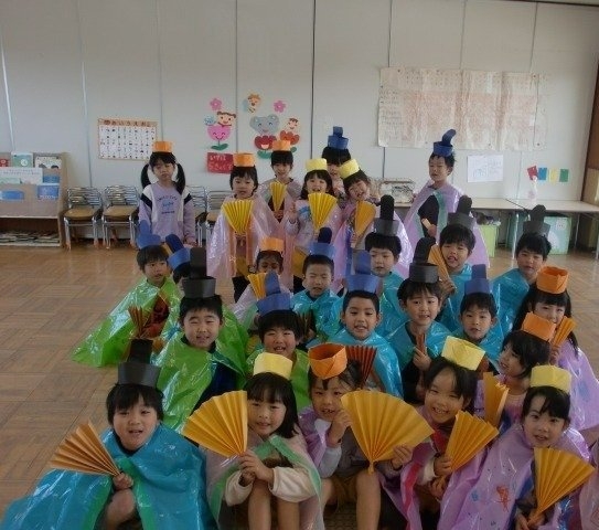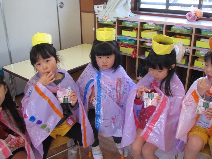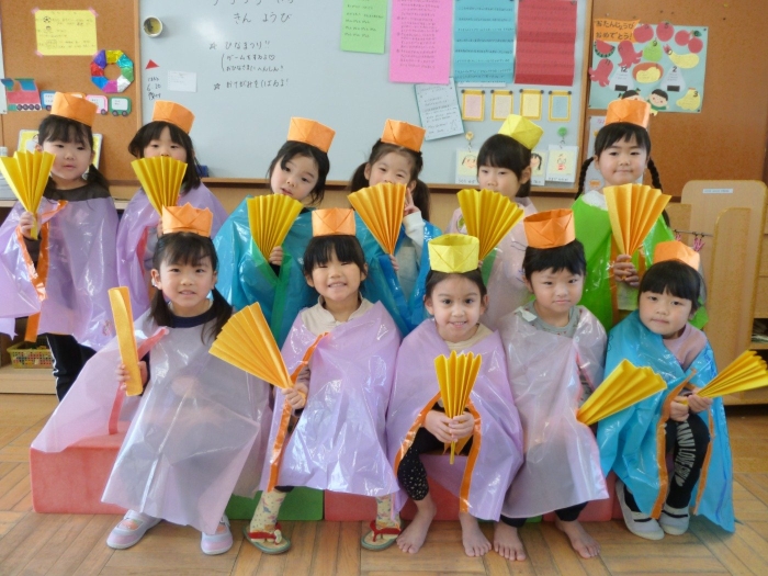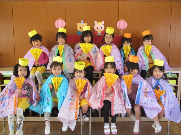 ひな祭りの製作で作ったなりきり衣装に着替えてお内裏様とお雛様に変身!!😘