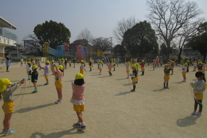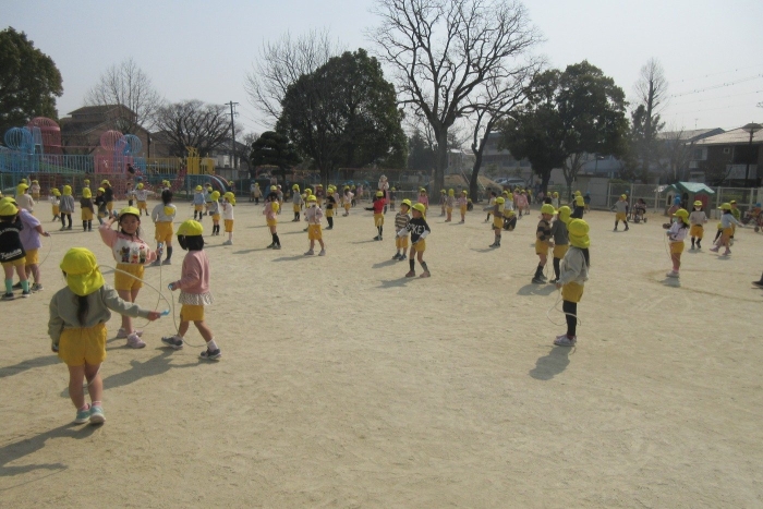 続いて縄跳びも、お友達とぶつからないように広がって~・・