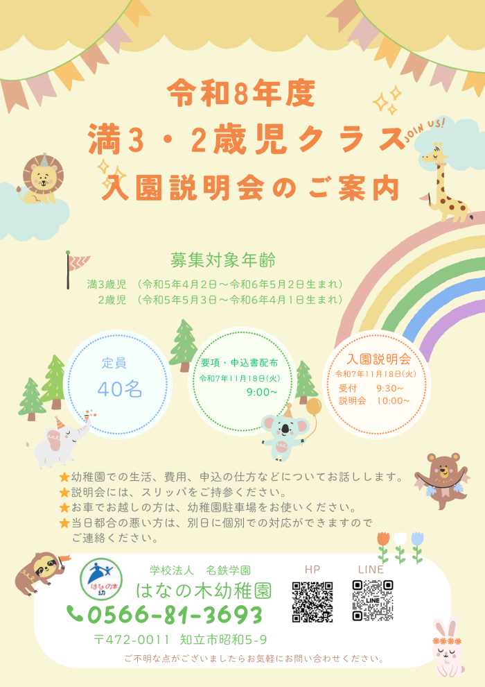 令和8年度 2歳児・満3歳児クラス(うさぎのくみ) 説明会と受付について